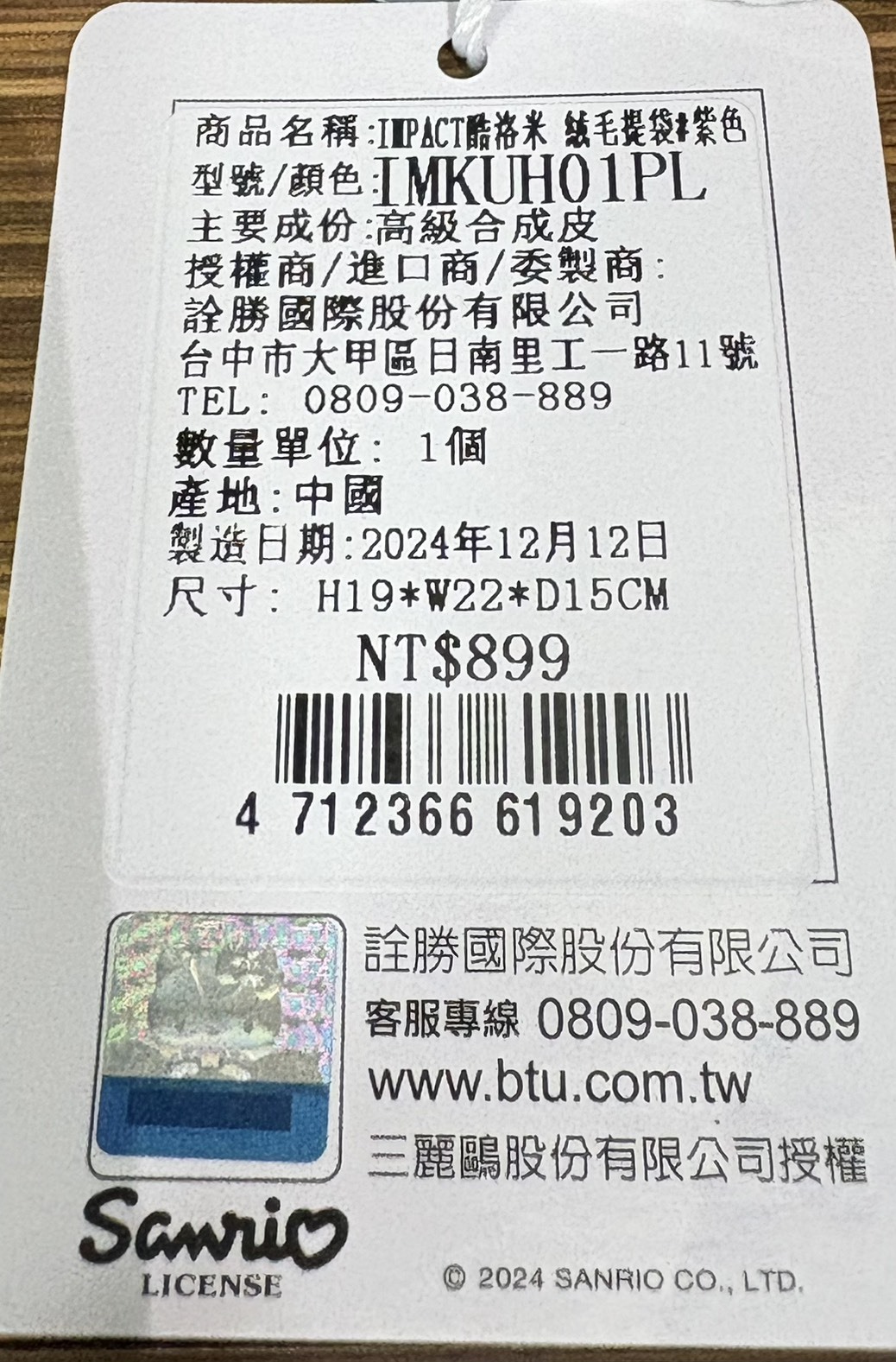 IMPACT怡寶酷洛米絨毛手提袋IMKUH01PL(IM11408118)