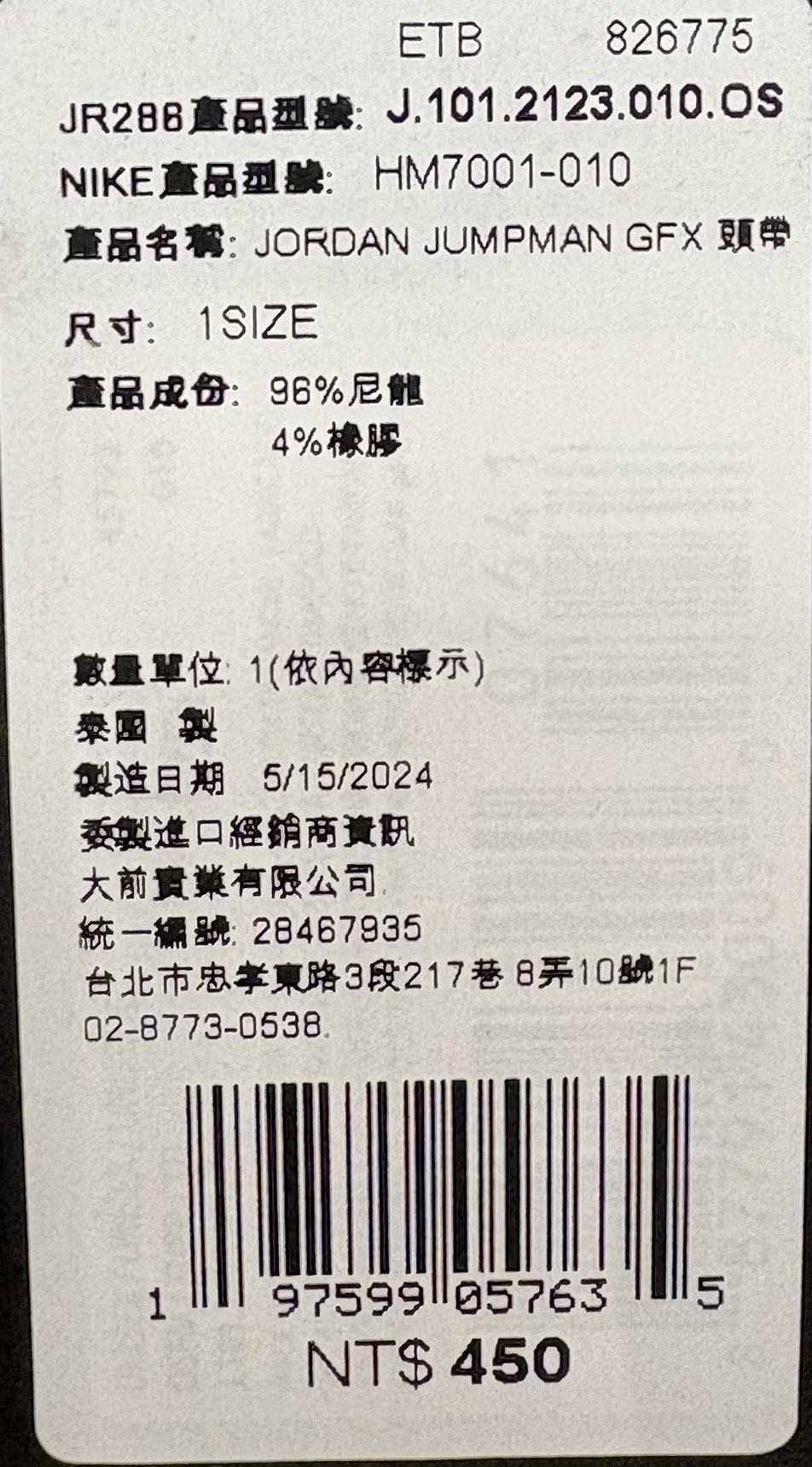 NIKE JORDON運動頭帶HM7001-010(ASS119)