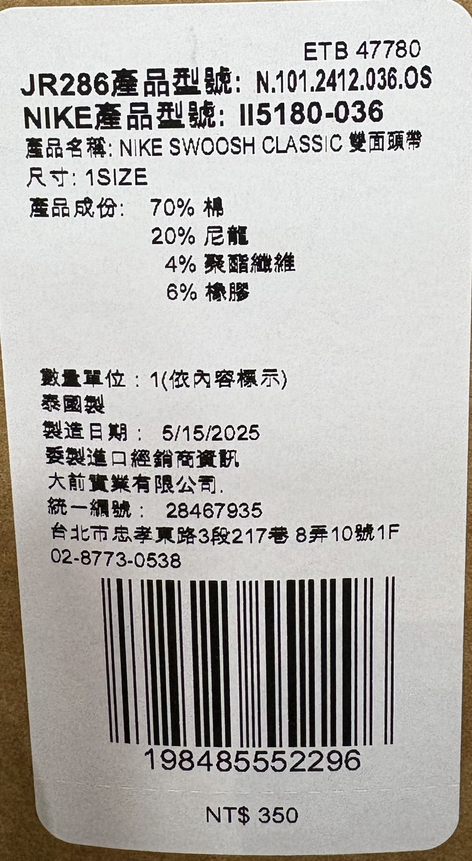 NIKE SWOOSH雙面運動頭帶II5180-036(ASS121)
